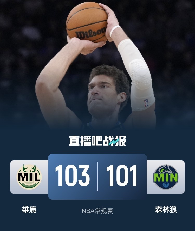 一开场,雄鹿率先发力,多点开花取得两位数领先,爱德华兹里突外投苦苦支撑,次节雄鹿命中率骤降,森林狼大举反击迫近比分,半场战罢雄鹿51-50领先森林狼。下半场,双方继续缠斗,比分始终紧咬,末节双方争夺陷入白热化,关键时刻大洛造成杀伤两罚都有,爱德华兹三分绝杀不中,最终,森林狼101-103雄鹿就此落败。