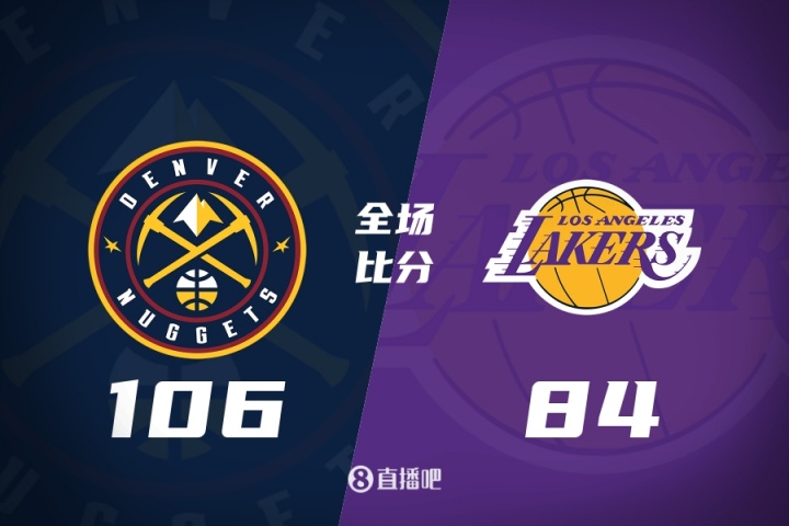 首节掘金以一波9-3取得开局领先,不过这是首节双方最大分差,这之后湖人迅速反弹也取得过领先,但双方状态基本相当差距在一个球上来回拉锯;次节场面依旧,掘金虽然受困外线手感不佳,但在三分线内他们半场24投17中手感相当火热,他们也借此在次节前期落后的情况下扭转局势带着4分领先进入下半场。休息归来双方拉锯大半节后掘金突围而出,他们打出跨节16-6的攻势拉开两位数分差,这之后分差越拉越大并在末段扩大至20分以上早早失去悬念。最终,掘金106-84轻取湖人拿下比赛。