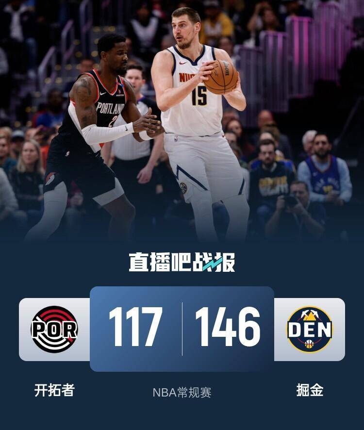 约基奇三节40+7+8 穆雷被驱逐 掘金轰146分轻取开拓者迎7连胜