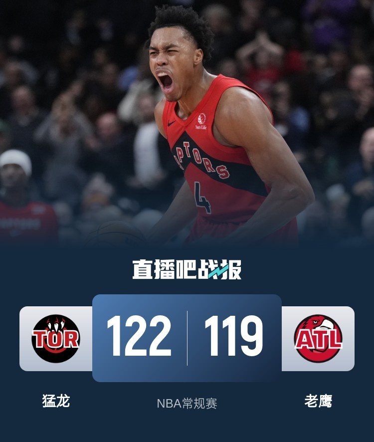 巴恩斯25+6 特雷-杨18+13 丹尼尔斯22+8+5 猛龙6人15+胜老鹰