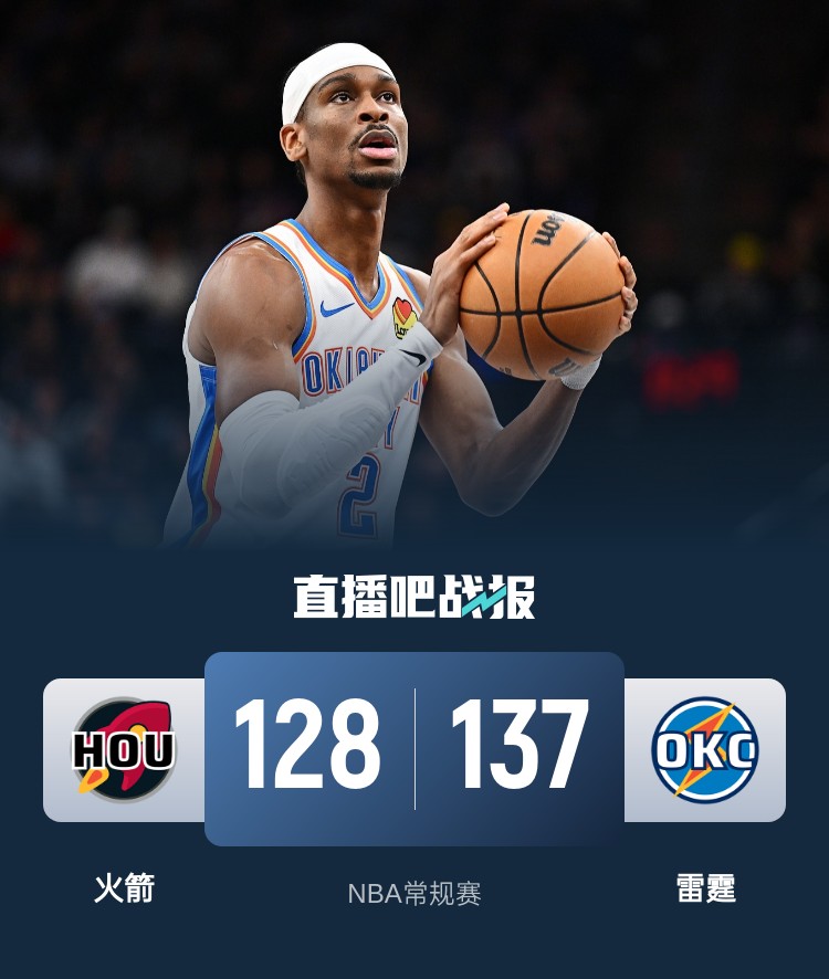 亚历山大51+5+7 谢泼德新高25+5 白魔27+11 雷霆击退残阵火箭