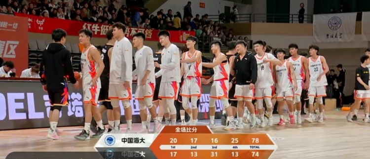 第四节,中国石大突然哑火,中国海大趁势轰出13-0的攻击波夺回优势,中国石大及时回暖,双方争夺陷入白热化,关键时刻武涛中投命中,郜周旭高抛也有,中国海大拼下关键前场篮板,田家齐暴扣杀死比赛。最终,中国海大78-74力克中国石大。