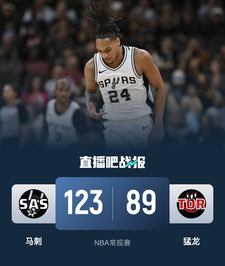 瓦塞尔25+6 巴恩斯22+6+6 马刺34分大胜猛龙近5战4胜