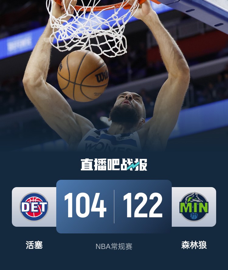 华子25+6 戈贝尔19+25 两队冲突7人遭逐 森林狼终结活塞3连胜