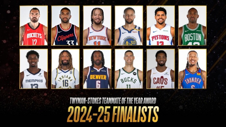 4月3日讯 今日,NBA官方公布了本赛季的最佳队友奖候选名单。