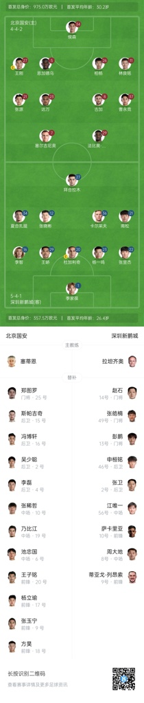 国安vs新鹏城首发:林良铭、塞鸟先发,拜合拉木、卡尔采夫出战