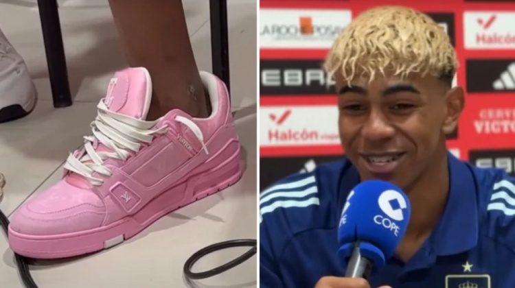 接受采访时穿了价值超过1000欧的LV运动鞋