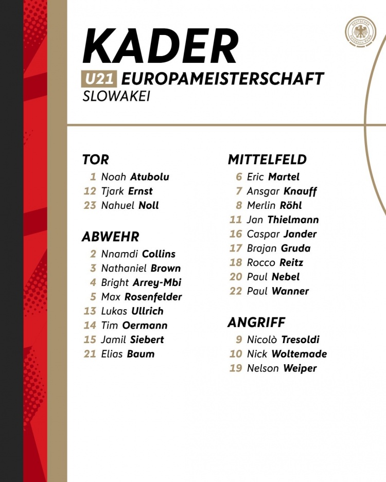 德国U21欧洲杯名单:沃尔特马德、万纳尔、克瑙夫在列