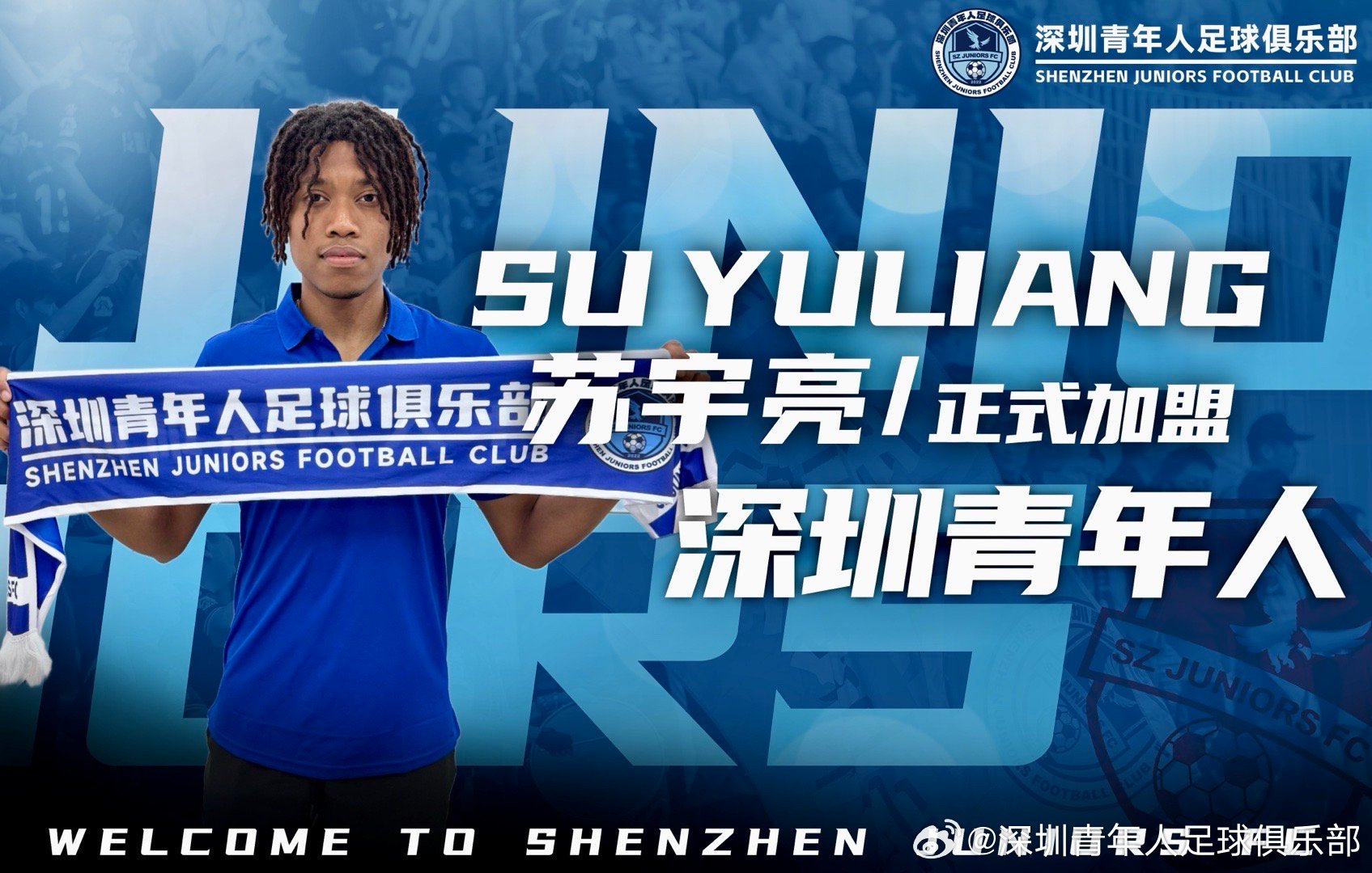 06月18日讯 官方消息,20岁中非混血球员苏宇亮加盟中甲深圳青年人。
