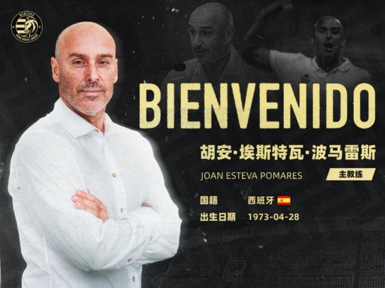 胡安·埃斯特瓦·波马雷斯,1973年出生于西班牙巴塞罗那,持有欧足联职业级教练证书,拥有横跨欧亚的丰富执教履历。其在球员时期曾效力于西甲球队西班牙人的青训队,并在西班牙国内联赛有长期踢球经历。在其执教生涯中,曾先后掌舵西班牙马翁竞技、康斯坦西亚、卡斯特利翁、欧罗巴、菲格雷斯等多家俱乐部,并积累了宝贵的亚洲执教经验,曾担任菲律宾联城足球俱乐部、香港晋峰足球会及中甲球队佛山南狮足球俱乐部的主教练,其执教风格以注重战术细节和阵型多变著称。