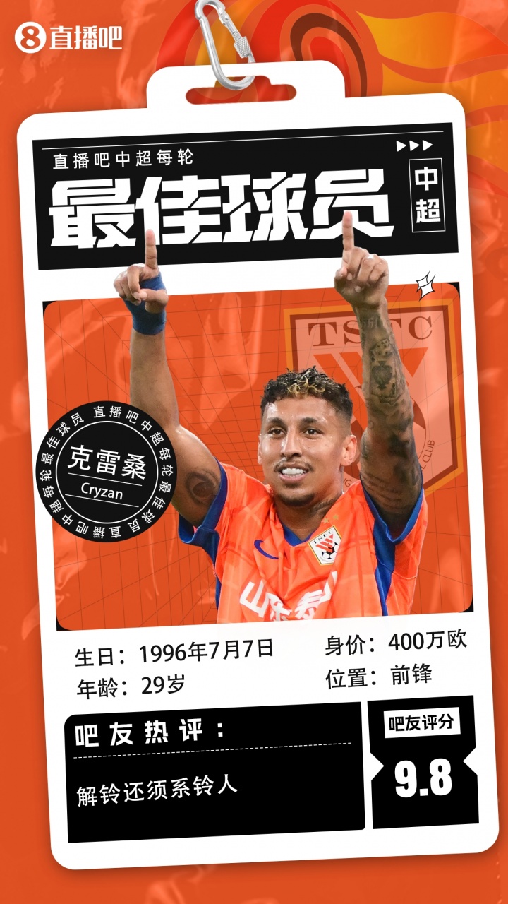 【】中超第四轮最佳球员:基莱斯当选,为了天津永远进攻!