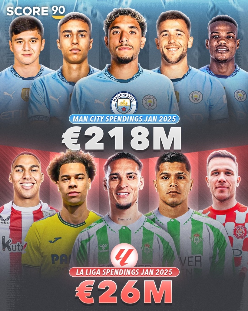 02月05日讯 2025年冬季转会窗关闭,西甲成为欧洲五大联赛里支出数字最低的联赛,他们支出的转会费甚至不及英超的零头。