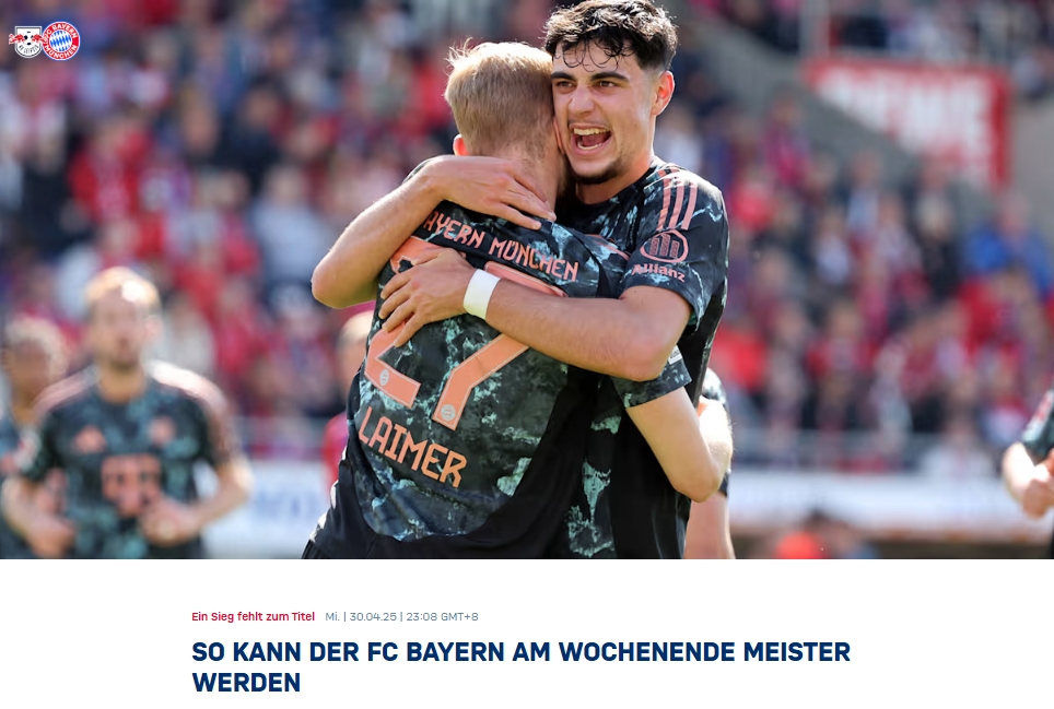 05月03日讯 今天晚上21:30德甲第32轮,拜仁客场vs莱比锡,若是本场取胜,拜仁将提前2轮夺得德甲冠军。拜仁官网列举了拜仁若想夺冠可能发生的情况。
