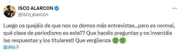 伊斯科社媒:之后你们还要抱怨说我没给你们更多机会采访我…确实没机会了。你们这叫什么报道?你们提问后自己编造回答和标题!真的恶心