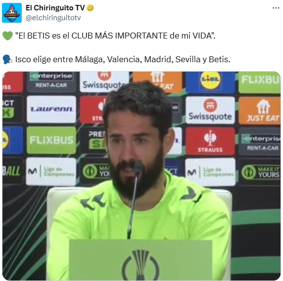 “贝蒂斯是我职业生涯最重要的球队”,伊斯科在马拉加、瓦伦西亚、皇马、塞维利亚和贝蒂斯中做出了选择。(上图)